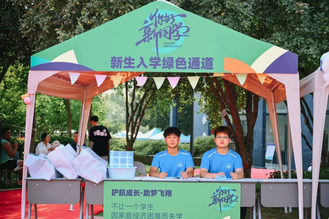 新生报到时,学校为原建档立卡学生发放爱心礼包,包含日常生活用品,帮助学生缓解入校时的经济压力。