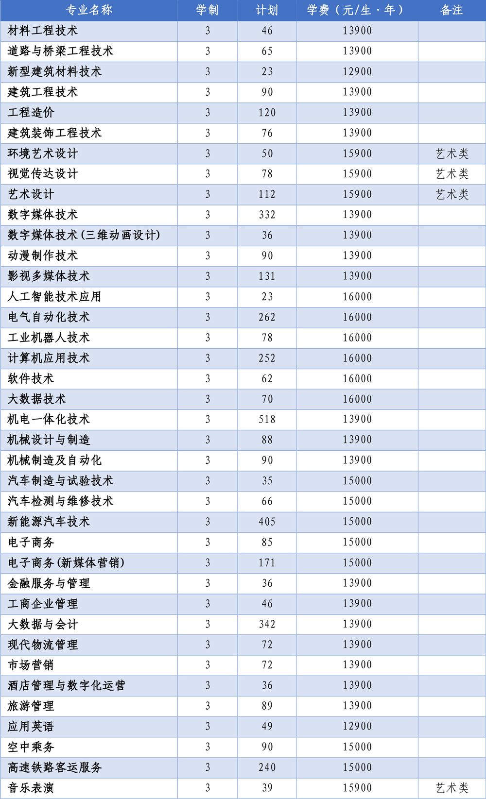 学校2025年单招计划为4565人,招生专业和计划如下:
