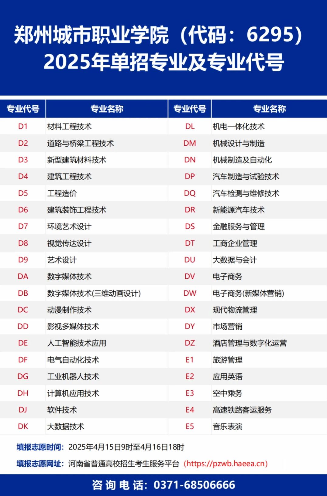 郑州城市职业学院2025年单招志愿填报指南!(附专业代号)