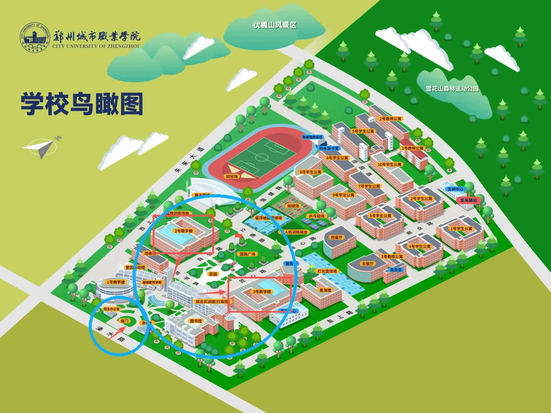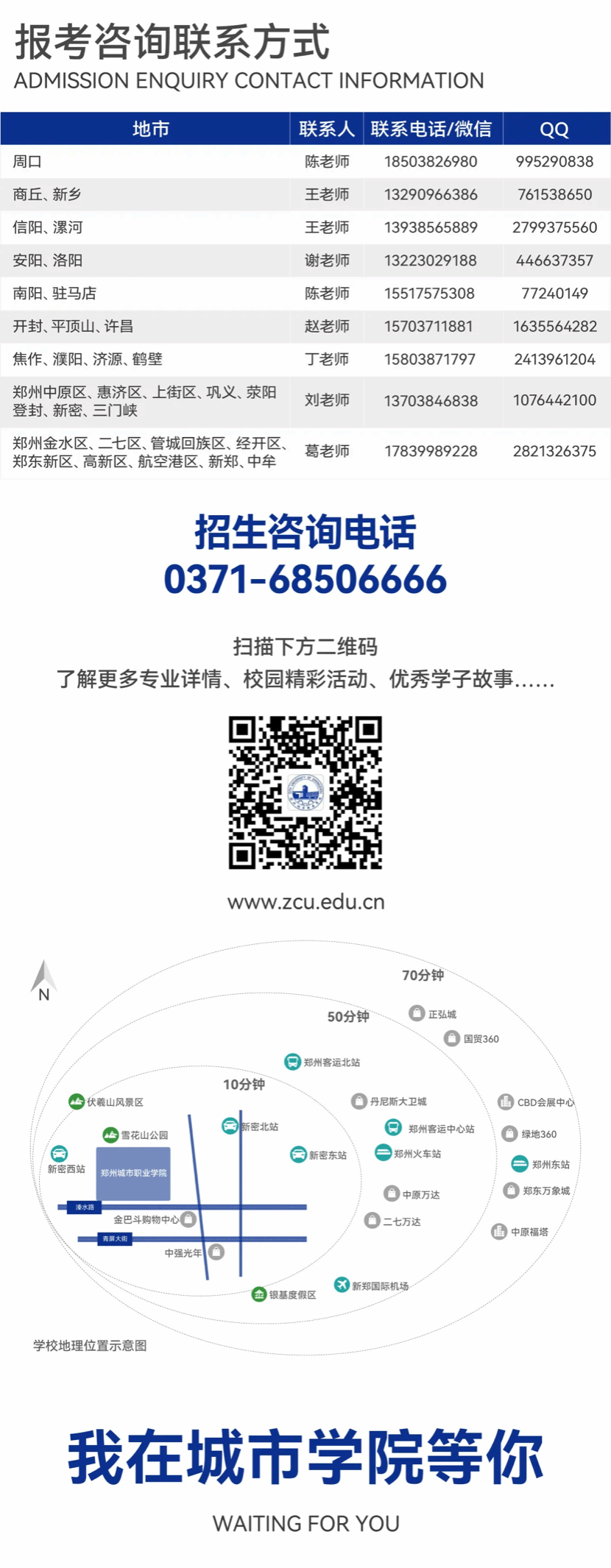 1.自驾到校方式:请自驾来校的考生及家长,地图导航终点设置为“郑州城市职业学院南门”即可查询路线。
