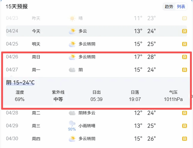 >>温馨提醒:关注天气预报,做好应对措施,建议携带外套,备好雨具。
